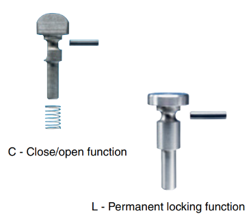 C, close/open set for the Midgrab MIG (spring operated locking device can be placed either in open or closed position).