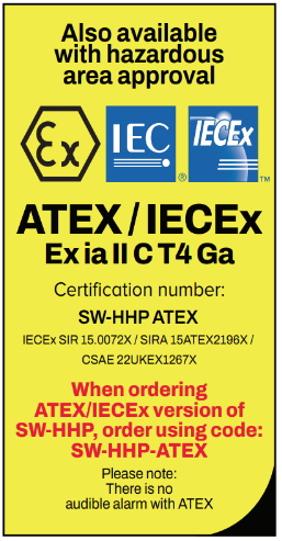 Användarinställbart 90db akustiskt överbelastningslarm (ej ATEX)