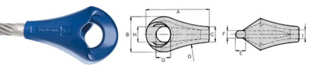 En stållina med större dimensioner än vad som anges i tabellen får inte gjutas till ett linpäron, även om ”I”-måttet skulle tillåta detta.