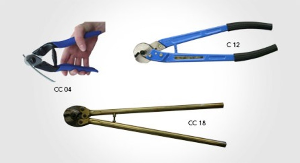Stållin sax CC 04 är en enhandsax för stållinor upp till 4 mm, bredd: 60 mm (i stängt läge).