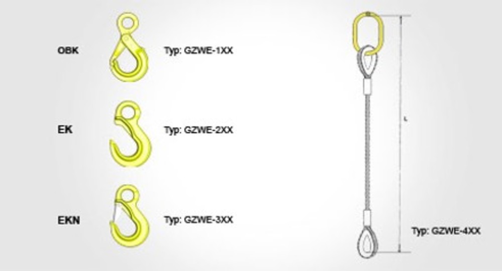 XX = Kod (art.nr.) Se tabellen nedan. Exempel: För ståltrådsrem med 10 mm tråd och EK-krok blir art.nr. GZWE20320.